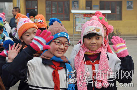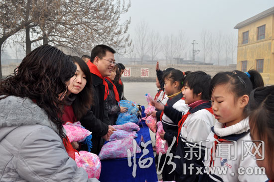 嘉泉小学位于临汾市刘村镇,现有在校学生125人,由于学校经费有限,孩子们没有专门的图书室,得知这一消息,安利志愿者们决定帮助学校完善阅览设备。同时,由于师资紧张,该校未开设音乐及美术课,志愿者们为孩子们精心购买的相关教学用品,并决定从明年起,定期为孩子们学生们教授音乐及美术知识。除了阅报栏、电热水器等教学生活用品,志愿者们还为孩子们带来了冬日暖洋三件套(帽子,围巾,手套)125套,帮助他们抵御冬日的严寒。