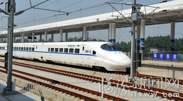 9时15分,从临汾始发,开往北京西站的D2004次动车组满载着从临汾上车的1024名乘客和全市人民的祝福,从3站台准点发车,一路向北。