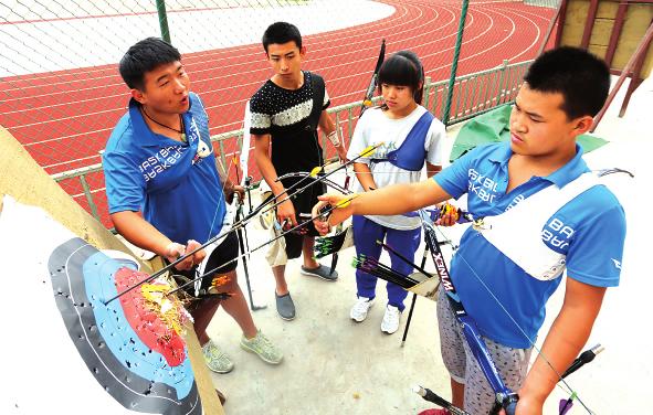 在市体育场的角落,一个可以说简陋到寒酸的场地却丝毫阻挡不住队员们训练的热情。当天,气温不是很高,20余名射箭队员们趁着凉爽宜人的天气加紧训练。每一轮练习过后,队员们都会聚在一起围着靶纸相互讨论技术要点。