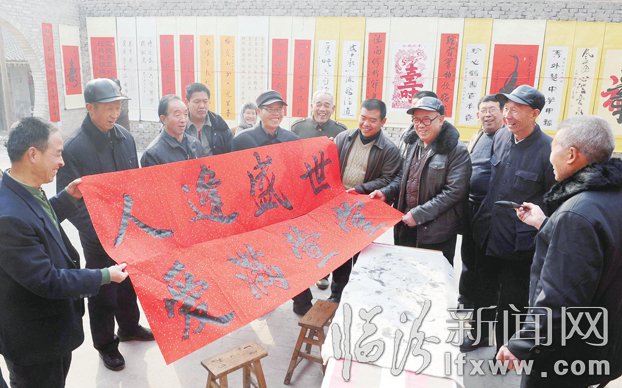 1月28日,襄汾县汾城镇北贾岗村一位普通农家妇女王秀珍的花甲寿联展在这里举行。来自本村及襄汾县以及临汾、运城的数十名楹联家前来挥毫祝寿,以寿联展的新颖形式进行祝寿,这在临汾市尚属首次。