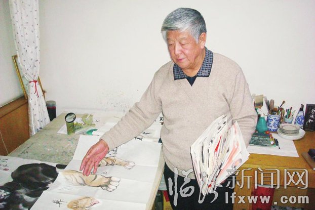 走进鼓楼北街北门巷王英铭的画室,仿佛走进了一个动物世界。画案上,是一幅墨迹未干的老虎,旁边一摞摞的草稿纸堆得快接近房顶了,上面画满了各种动物的脸谱,王英铭说,这些都为创作“十二生肖收藏扇面图”立下了汗马功劳。这位被誉为从黄河古道带着满身黄土走来的艺术家,虽年逾古稀,仍然以饱满的激情挥毫泼墨……