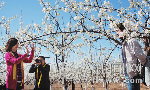 游客赏梨花 李自强摄