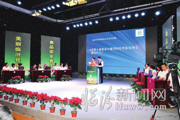 5月9日上午9时,经过市、区两级食安协委办周密细致的安排,临汾市首届食品安全知识竞赛在临汾电视台演播大厅拉开帷幕。17个县(市、区)和临汾、侯马开发区,市质监局、食药监局、工商局、畜牧兽医局、商务局共计24支代表队参加了竞赛。市人大常委会副主任王金珍、市政协副主席杨益民、市卫生局局长王山等领导出席了比赛活动。