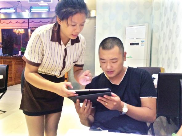 当然,对于这种“高科技”菜谱的使用,最有发言权的还是消费者,然而餐厅用平板电脑点餐,消费者则是褒贬不一。有顾客认为这种点餐方式更迎合白领阶层,尤其是“80后”、“90后”的生活方式,而有些年长的顾客则表示不适应,此类消费者还是更习惯于传统的纸质菜单,即便有平板电脑放在面前,也还是会向服务员要求拿纸质菜单来翻阅。采访中,正在某火锅店就餐的市民杨女士说:“第一次用平板电脑点餐,感觉挺新鲜的,感觉像在网上点餐,平时在家也总用ipad,所以用餐厅的平板也很顺手,感觉挺方便的。”而杨女士的父亲却有不同的看法,杨先生说:“我平时又不用平板电脑,台式电脑还会简单操作,这‘平板’没有鼠标,就不会用么。”杨先生连连摆手说:“不适应,一点也不方便。”对于像杨先生这样不太习惯用平板电脑的顾客,餐厅服务员则会代替顾客操作,用传统的方式向顾客“报菜名儿”,如顾客要求换纸质菜单翻阅,餐厅也会满足顾客需求。记者白洁