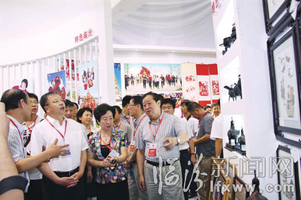 中宣部副部长、文化部部长蔡武,省委书记袁纯清,省长李小鹏,省委常委、宣传部部长胡苏平在文博会临汾展厅检查指导。