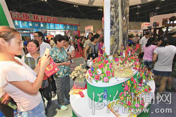 二、参展商品门类齐全,交易成果丰硕。按照市委常委、宣传部部长黄翠莲提出的“要借首届山西文化产业博览交易会这个平台,把我们临汾最好的文化产品在全省乃至全国人民面前展示出来”的要求,我市成立了专家评审组,依托临汾文化产业发展布局和我市各县(市、区)的地方特色,优中评优、精中选精,按照面塑类、剪纸类、山核桃类、青铜器类、花鼓类、葫芦类、布艺类、木版年画类、仿古家具类9个类别,确定了32家展商,640余件产品参加展会。展会第一天,临汾展厅就达到了68万元的现场销售额,并有多家外地商家上门与我市参展商洽谈寻求合作,此后交易热情一直高涨,到展会第3天,艺术花鼓、仿古家具、仿古青铜器类产品均销售一空,7月3日下午18时闭馆前,临汾展厅现场交易金额达到500余万元,商家订货合同签订116份,金额突破1200万元。