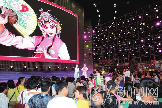 四、主题日活动观众云集,节目精彩纷呈。7月2日下午,是文博会现场“临汾主题日”活动时间。听说有临汾来的小梅花蒲剧表演和木偶表演,在节目开场前,舞台周围便聚满了闻讯而来、翘首企盼的观众。我市小梅花蒲剧团的两位“小梅花奖”获得者程雅琨和关佩一亮相,便博得了满堂彩,蒲剧经典剧目《裱花》的演出过程中,观众随着音乐的韵律低吟,伴着剧情的节奏呼吸,现场的掌声一浪高过一浪,气氛空前热烈。浮山木偶戏的表演更吸引了特殊的观众群体,艺术家表演谢幕后,数以百计的小朋友聚在一起久久不肯离去,这个摸摸木偶娃娃的小手,那个拉拉木偶娃娃的花裙子,有的忙着合影,有的问东问西,对木偶戏这种特殊的艺术形式表示了极大的兴趣和关注。