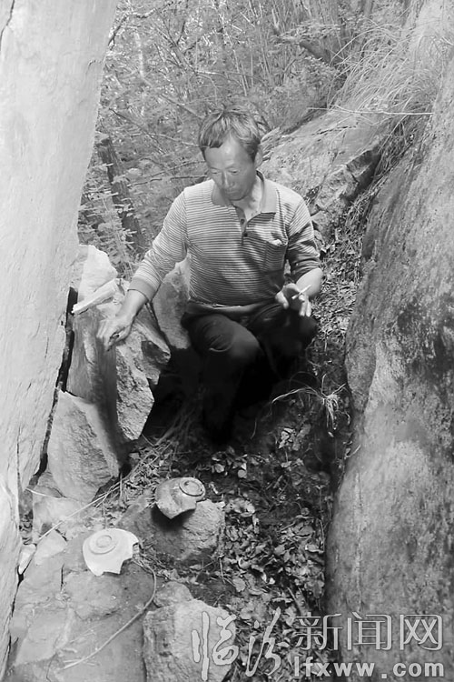 专家推断,这些瓷片已有数百年历史,几百年来,这些瓷器为什么会被安静地堆放在岩石背后的山洞里,这些瓷器的背后又有什么故事呢。由于一只獾的进入才打破了这里的宁静,一堆瓷器才被人们发现,如果真是元代的霍州窑瓷器,那么这些瓷片的发现对研究元代人民的生活具有重要的意义。如果不是元代,那这些瓷器又是何时何窑所烧制的呢?记者将进一步追踪大山深处藏宝洞的秘密。(文/图 记者 王隰斌 张春茂)