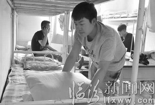 山信学院的新生正在整理内务