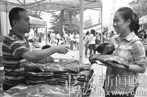 新生领取军训校服