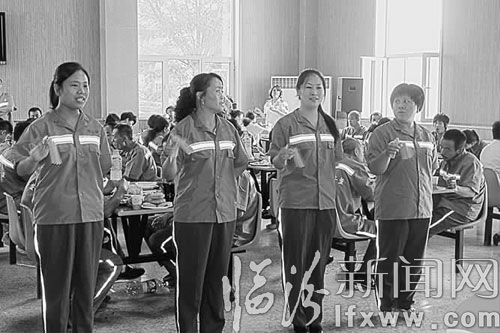 “垃圾清运工成了座上宾,中层干部成了服务员……”一位清运工开心地说。随着午餐开始的声音传出,中层管理干部、后勤服务中心的干部将美味佳肴一一送到环卫工人的面前。片刻,悦耳的快板声响起,环卫工人们停下了手中的筷子,参加聚会的住建局领导不由自主地拍起手来。原来是女子清运工张姣文、王妍、邓媛、安荣在为大家表演快板书《环卫新变化》……16时50分,所有的垃圾清运工又奔向了各自的岗位,一辆辆垃圾清运车驶向市区的四面八方,一处处地收集市民倾倒的生活垃圾。(文/图记者 王隰斌)