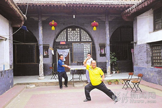 “师爷庞福有在西张村一呆就是3年。”韩清忠说,随着西张村送的匾,师爷也回到了团柏村。排在门生后的第一名韩玉柱师傅,也随着师爷住进了庞家,在庞家一边打工,一边学艺,为了学到通背拳的真功夫,也是三年没有离开师爷,一前一后跟师爷学了6年。学成后,回到村里独守圣王庙,教村中年轻人习练拳艺。
