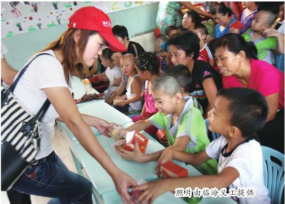 “募捐活动就设在鼓楼广场。”临汾义工们抱着募捐箱在街道旁、广场中向过往行人说明四胞胎一家的困境,希望人们伸出援助之手。