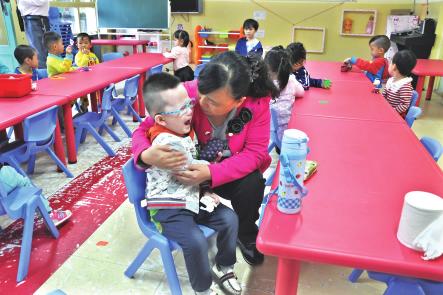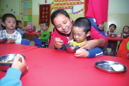 11时30分,孩子们坐在自己的座位上享用美味的午餐,而老师们还 要不时地给年龄较小的孩子喂饭。12时30分,午休成了老师们比较头疼的时间,捣蛋鬼”们以“不想睡觉”为理由“对抗”,老师不得不穿梭在一张张小床间,轻声哄着,而此时老师的饭菜已经有些凉了。