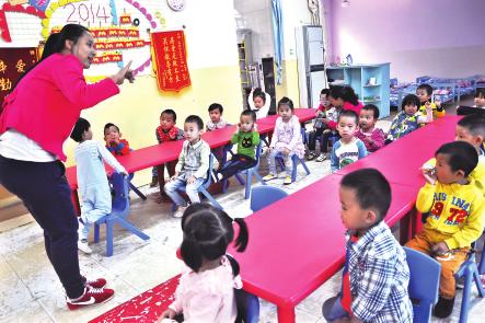 连续的阴雨天气影响,户外活动不得不取消。15时左右,小六班的孩子们从午休中醒来,老师们打开音乐,教孩子们学手指操、跳舞,孩子们活泼可爱的天性,让雨天的教室里也格外热闹。一系列的活动结束后,孩子们要开始学习“文化课”了,老师打开电子屏幕,让孩子们观察一些小动物,然后在书本上找到每个小动物的尾巴,用铅笔连起来……看似简单的学习,但有的孩子学起来显得十分吃力,老师要不停地手把手去教。这样的工作每天要重复无数遍……16时30分,晚饭的到来意味着“今天的幼儿园生活”即将结束,看着孩子们津津有味地吃着饭菜,两位老师欣慰地笑着。