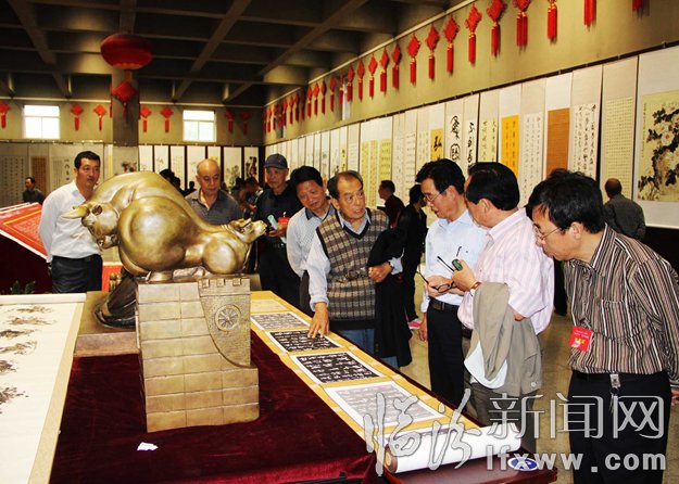 晋陕豫黄河金三角地区的老年书画家们参观书画作品
