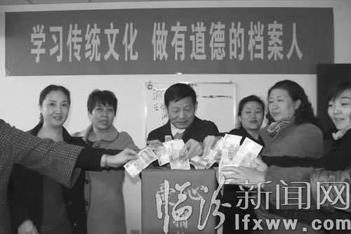 临汾新闻网讯(记者 王隰斌 弓佩玉)昨天,市城市建设档案馆举办了以“学习传统文化,做有道德的档案人”为主题的道德大讲堂,邀请临汾日报社总编王庚星授课。王庚星围绕“孝”文化在为人处世中的重要作用,对中国传统文化做了系统的梳理。活动结束时,工作人员为弱势群体爱心捐款,传播社会大爱。