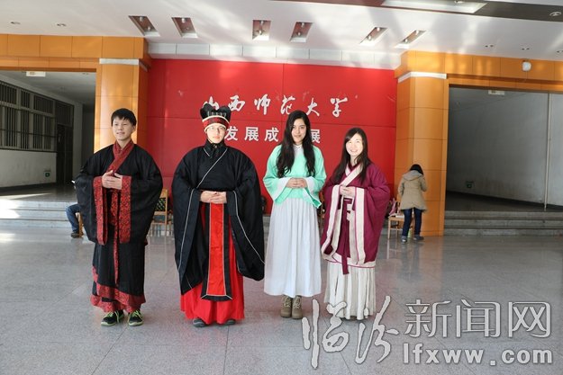 12月22日,营员们进入山西师范大学进行一天的文化传承学习。首先,在山西师大戏曲研究所学习我国的戏曲文化,观看山西省各个时期的戏台历史变迁,并有幸观看了我市小梅花奖得主进行的《挂画》、《裱花》、老生、刀马旦等技巧表演,营员们与演员们进行了深入交流互动,对传统戏曲文化产生了浓厚的兴趣。紧接着,由我市著名的剪纸艺术大师梁春兰为孩子们进行了授课,最后孩子们在老师的指导下,动手剪出了一幅幅作品,喜不自禁,纷纷将作品包好,准备带回去。下午,接受了我国的礼仪之一----汉服的教育和实践;聆听了我市著名山西省散文协会副会长,中国作家协会会员乔忠延老师的感知临汾历史的讲座;营员们还与我市兰亭书苑的师生们进行了书法互动,亲自感受了我国的书法魅力。12月23日上午,冬令营一行游览了临汾市古城大院,在讲解员的解说下,营员们认真地参观了古城大院的三个院落。他们对院落中的各类摆设及家具非常感兴趣,不断地提问题,找答案,拍照留影。随后,参观了我市的规划展览馆,了解了我市的发展变迁和未来城市规划蓝图。下午,“寻根之旅”营员们来到我市一中,和一中的同学们进行了精彩的踢毽子、拔河、足球友谊赛。 赛场上激烈竞技,赛场下掌声连连,欢呼声中,双方的青少年们很快就成为了好朋友。12月24日,“寻根之旅”的营员们与一中学生们共同坐在教室里接受了语文、历史、地理、美术、音乐、书法课的学习。这些来自澳大利亚、新西兰的华裔青少年对国内中学教育有了一个初步了解和认识。新西兰带队老师对临一中老师精彩的授课表示赞赏,认为对她们本人也是一次很好的教学体验。晚上,营员们与同学们进行了文艺联欢。 24日恰逢西方的平安夜,一中的同学们为来自澳、新的同龄人精心地准备了一场以“青春情·中国梦”为主题的联谊晚会。同学们表演了快板,民族舞,武术、诗歌朗诵,民乐表演等具有中国特色的节目,华裔青少年们也表演了小品,诗歌朗诵以及钢琴独奏等节目。晚会后,一中的同学们与华裔青少年们交流合影、互留联系方式。