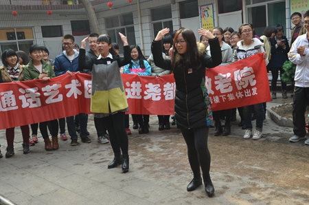 随后,老人走出屋子与学生们围成圆圈,学生们献上了精心准备的文艺节目。