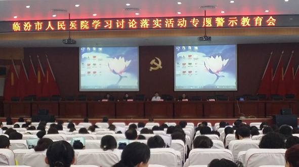 9日下午5时,临汾市人民医院在新医院召开了“学习讨论落实活动专题警示教育会”,全院干部一起连续两遍观看了网传视频。会上,院方首先表明了三点立场。第一,端正态度,正确认识存在的问题。这个片子暴露医院管理当中的问题和缺陷,院方必须正视问题,改变过去的旧常态。第二,勇于揭短,认真查找医院管理和服务态度存在问题的原因。第三,真抓实改,切实改变作风服务好人民群众。在全院开展反思整改服务态度、服务质量活动;认真落实十五项医疗核心制度;认真落实“服务患者林距离评价制”;凝心聚力,全员合力做好各项工作;明确主体责任,认真履行“一岗双责”。院方认为,这一事件确实使临汾市人民医院蒙羞,有损新医院刚刚在广大市民中竖起的良好形象,必须认真对待,予以严肃处理。 随即,儿科和检验科负责人面对全体参会人员分别作了检讨发言。