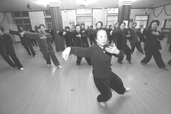 太极班,学员们正跟着老师学习分解动作,站在前排的明显很有“基础”,分解动作和老师如出一辙。而站在后排的学员,显然还是初学者,动作似有三分像,但却少了一份太极的洒脱。“太极拳讲究的就是一个修身养性,欲速则不达,如果不能静下心来,很难学到精髓。”太极班的老师说,学员都十分努力,所以学习的时候都能够做到融会贯通,她教得十分轻松。