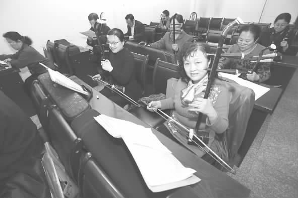 相对太极班的宁静,乐器班显得十分热闹,学员在老师的带领下,对着教材,慢慢练习。“以前总想学古典乐器,但没有时间,现在退休了,时间也富裕了,就跑到这里来学习。”一位学员说,她学习古典乐器是为了圆自己年轻时的一个梦。