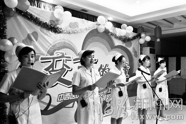 临汾新闻网讯 五月十二日在我市中西医结合医院医护人员在表演节目当日该医院举办了“变革的力量”护士节主题联欢会全体医护人员结合自己的岗位实际自编自演了精彩的文艺节目, 共同度过了一个快乐的节日。 记者 闫锐鹏 实习生 郑远飞 摄