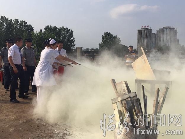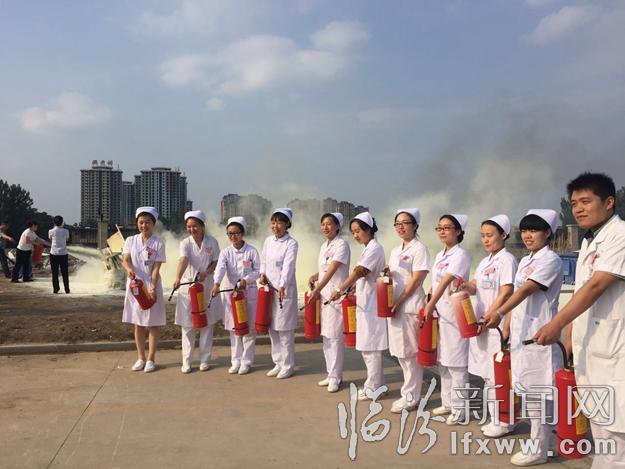 在演练中,新院区从报警通讯,现场灭火,人员疏散,机电抢险,安全警戒,医疗救护,后勤保障等方面全面模拟了灾情发生时的灭火及病人的安全转移工作。同时,院领导、医护人员、物业工作人员等对灭火器的使用进行了实地演练。