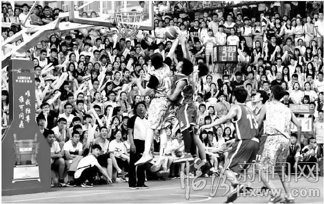 临汾新闻网讯 6月5日,山西师范大学学生篮球联赛男篮总决赛暨颁奖典礼”在该校灯光球场举行,音乐学院战胜传媒学院获得男子篮球总冠军。 记者 孙国芳 实习生 郑远飞 摄