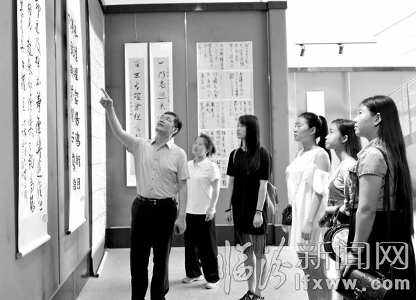 临汾新闻网讯 6月15日,山西师范大学书法学院首届硕士、本科书画毕业作品展在该校展览馆展出。本次展览共有110余件作品,有行书、楷书、国画、山水画等内容,展示了毕业生们的学习成果。孙国芳 摄