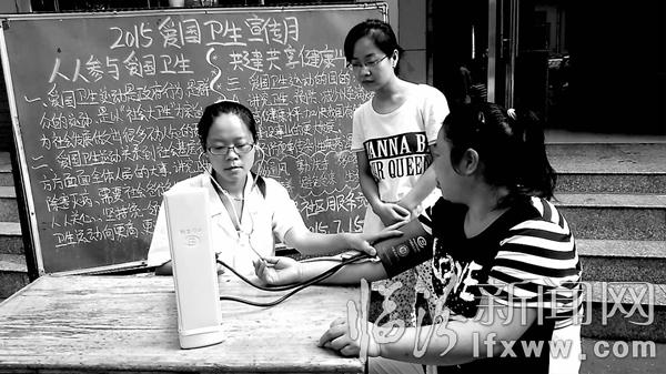 图为乡贤社区卫生服务站医务人员正在为辖区居民免费义诊。记者 范韶华摄