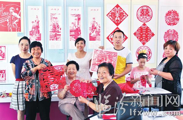 图为首期剪纸艺术培训班的学员在展示作品。