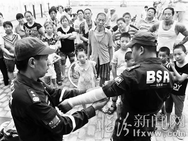 临汾新闻网讯 为了便于广大农村朋友了解掌握救援知识,日前,我市蓝天救援队的队员们冒着酷暑,来到尧都区刘村镇刘南村,为村民和孩子们上了一堂生动的救援知识课。这次培训是我市蓝天救援队首次送应急救护知识下乡村活动,受培训的当地村民积极参与,学习热情度很高。记者 张莹超 摄