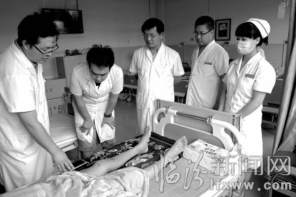 临汾新闻网讯 近年来,市骨科医院手外二科结合科室特点不断提高业务技术,先后成功治疗了多例断臂再植术、双上肢多发离断伤再植术、牵拉成骨技术治疗复杂性骨髓炎,受到患者的好评。图为手外二科医生申彦武和医护人员在为术后患者查看伤口恢复情况。记者 郑远飞摄