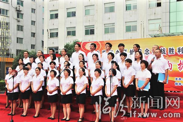 临汾新闻网讯(记者 卢婷)“起来,不愿做奴隶的人们,把我们的血肉铸成我们新的长城……”8月30日上午9时许,市区迎春南街小广场上歌声嘹亮、热闹非凡,由尧都区乡贤街办事处举办的纪念中国人民抗日战争和世界反法西斯战争胜利70周年“抒发爱国情怀,唱响抗战歌曲”大合唱在此举行。