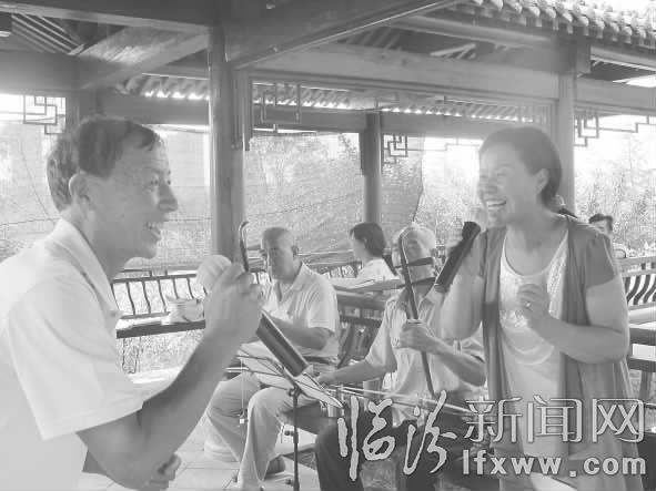 “我是一名退休的内科医生,每天下午都来广场唱歌伴奏,现在不仅会拉二胡,还会吹笛子,目前想学习西洋乐器。”74岁的嘉明华说,老有所乐,有个追求是快乐的,最起码有个事做。