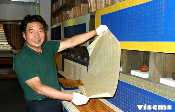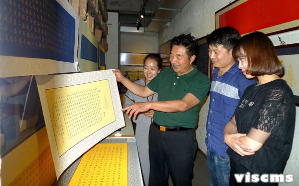临汾新闻讯 9月15日,在我市恒善堂茶文化中心,《心经》收藏爱好者倪振亚在为书画爱好者介绍《心经》。连日来,由倪振亚收藏的100余幅五体书法《百家心经》在善堂茶文化中心展出,他用两年的时间收藏了全国名家的《心经》书法作品,内容涉及楷书、行书、隶书等多种形式,以独特的书法艺术形式为全市的收藏及书画爱好者提供了一个交流平台。记者 闫锐鹏 摄