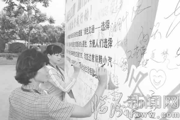临汾新闻网讯 9月20日,公益顺风车临汾站志愿者在鼓楼广场举行第九个中国城市公共交通周暨“无车日”签名活动,今年城市无车日活动的主题是“绿色交通——选择改变融合”,市志愿者联合会的志愿者们积极响应并进行签名。