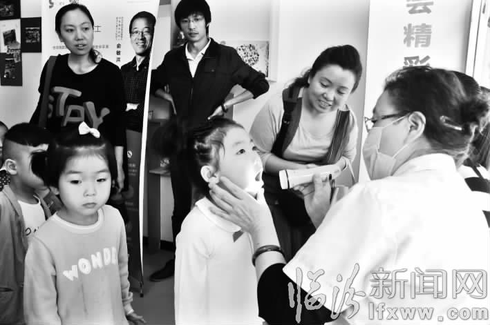 临汾新闻网讯 9月20日是全国第27个爱牙日,我市建峰齿科医院的医护人员来到鼓楼广场老约翰绘本馆中,医护人员以讲故事的形式为小朋友讲如何刷牙、保护牙齿健康等知识,牙医逐个对小朋友的牙齿进行检查,并给家长提一些建议,让家长们知道爱护牙齿,要从小做起,树立保护孩子的牙齿、关注口腔健康的意识。 记者 刘晚 摄
