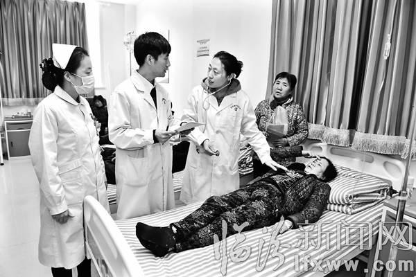 临汾新闻网讯 11月18日,在莉轶糖尿病医院大宁分院内科门诊部,医护人员在为患者制订治疗方案。冬季是内科常见病高发季节,该院开展了“冬日送温暖”医药惠民活动,为山区农民建立健康档案、开设平价药房等,让广大群众在家门口享受到健康大餐,受到大家欢迎。