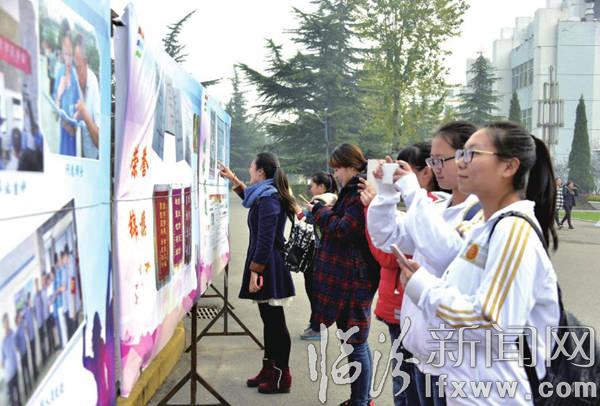 临汾新闻网讯 近日,山西师范大学在该校巨人广场前举办了2015年暑期“三下乡”社会实践活动图片展。暑期“三下乡”社会实践活动参与人数为2227人,活动区域涉及北京、天津、河南、福州、江西等17个省、直辖市和我省77个县市区,历时40余天。此次活动进一步激发了广大青年学生成才报国的责任感和积极性。饶北成 乔银桃摄