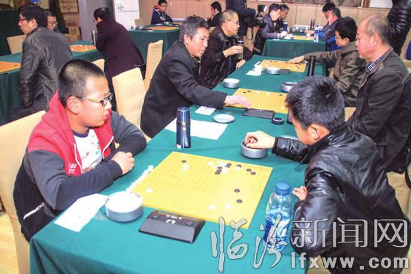临汾新闻网讯 11月21日, 为期三天的市第九届“尧王杯”围棋赛在八一宾馆拉开战幕。 来自全市的六十余名选手展开了激烈角逐。 其参赛选手中年纪最小的仅有十岁最大的已经七十五岁图为比赛现场。记者 李娇摄