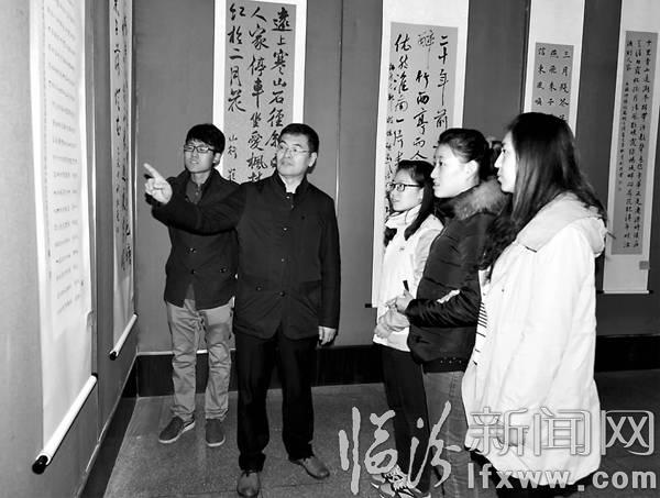 临汾新闻网讯 近日,山西师大美术馆举办了“书法学院建院一周年暨书法专业建立十二周年书画作品展”。此次展览共展出书画家、导师、本科生、研究生共232幅书画作品,吸引了不少学生前来观看。记者 孙国芳摄