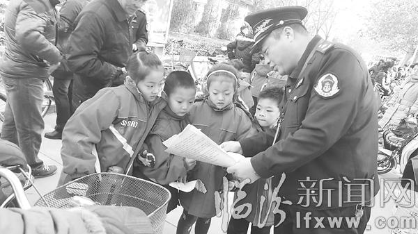 临汾新闻网讯 连日来,我市开展了对非法营运的三轮车和无牌无证的电动四轮车查扣工作,经过多日的集中整治,市区交通环境大大改善。为了巩固成果,近日,城市客运管理处的执法队员深入社区、学校等地宣讲法规,倡议市民杜绝非法营运的三轮车和无牌无证的电动四轮车。图为城市客运管理处北城稽查队的队员正在位于车站街的临汾市第二小学外,对放学的孩子们宣讲乘坐“黑三轮”的危害。 记者 杨全 摄