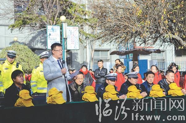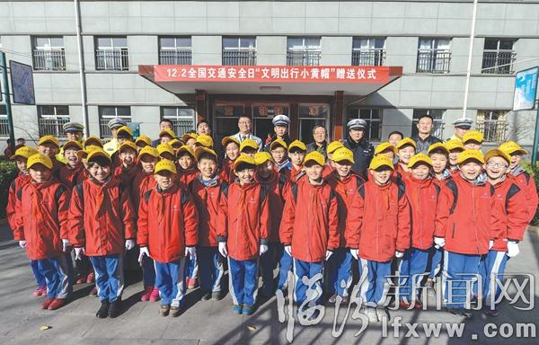 临汾新闻网讯12月2日上午,山西生龙国际投资发展有限公司为时代风华特色学校的学生们赠送了文明出行小黄帽。这是该公司与临汾市公安局交警支队、临汾晚报小记者团联合举办的12·2全国交通安全日系列活动之“文明出行小黄帽”赠送活动,借此倡导每一位小学生自觉遵守交通法律法规,掌握交通安全知识,从而带动整个社会都树立起文明出行的理念。