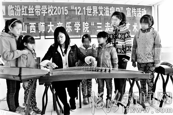 临汾新闻网讯 近日,山西师范大学音乐学院“三走进”艺术团走进绿色港湾红丝带学校慰问演出,师生们通过钢琴演奏、古筝演奏、舞蹈、双簧等多种艺术形式,为红丝带学校的师生们送去了一场丰富多彩的艺术盛宴。 记者 孙国芳 摄