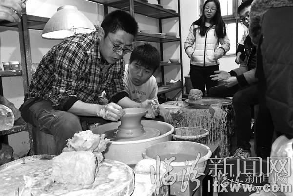 临汾新闻网讯 12月12日,山西师大校团委组织莳英计划全体学员前往县底镇庞杜村红陶坊进行参观体验,让大学生们增长见识、放松心情,充分感受陶瓷的艺术魅力。图为红陶坊主人段禹光正在展示制陶的拉坯环节。