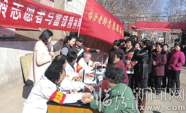 为了服务看病困难的老年人,协会牵头组织医疗单位退休专家组成老年志愿团,在市区平阳广场等地开展60余次献爱心义诊活动,还先后组织多名退休医疗工作者赴尧都区屯里镇、县底镇、枕头乡、段店乡、吉县等地进行义诊,前后接诊人员达3370人(次),并向当地老年人发放了万余元的常备药品。在双拥社区、康庄社区、迎春开发新村社区都有他们义诊献爱心的身影,其中最年长的医务人员已是80岁高龄,每次接受义诊的老年人多达百人。