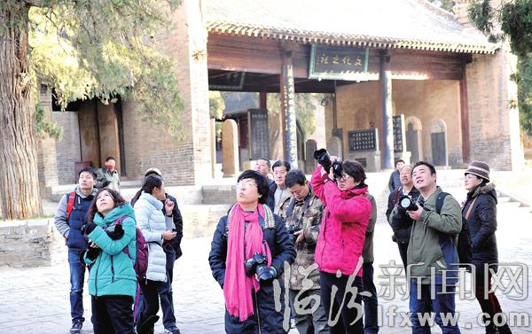 临汾新闻网讯 12月19日,来自晋陕豫黄河金三角的摄影家们在渭南市白水县仓颉庙采风。当日,由晋陕豫黄河金三角摄影协会举办的“渭南之冬,走进仓颉故里,感受造字文化”摄影采风活动举行,我市6名摄影家应邀参加。本次活动旨在进一步推进黄河金三角地区旅游互动,搭建摄影艺术交流平台。 记者 闫锐鹏 摄