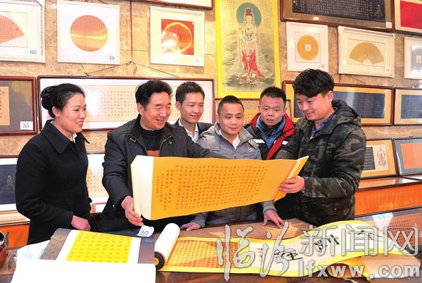 临汾新闻网讯 近日,在我市思麦尔文化中心,书画策展人倪振亚(左二)在向书画爱好者介绍其收藏的《心经》。当日,中国文化促进会临汾思麦尔文化中心成立,他们将通过定期举办书画交流展、艺术家讲座、传统文化讲座及书画艺术品推介等活动弘扬中国传统文化,促进我市文化市场繁荣发展。 记者 闫锐鹏 摄